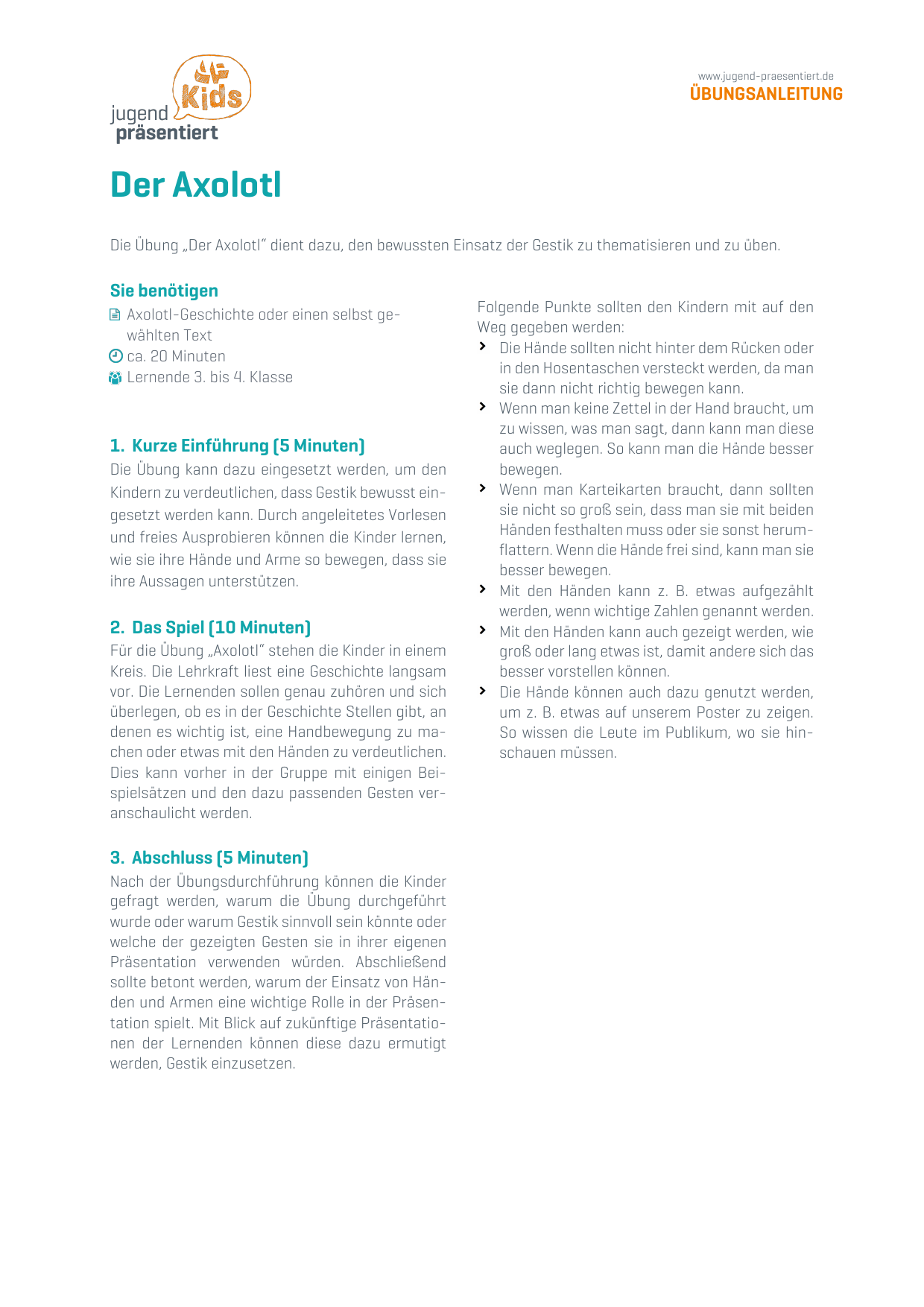 Übungsanleitung - Der Axolotl