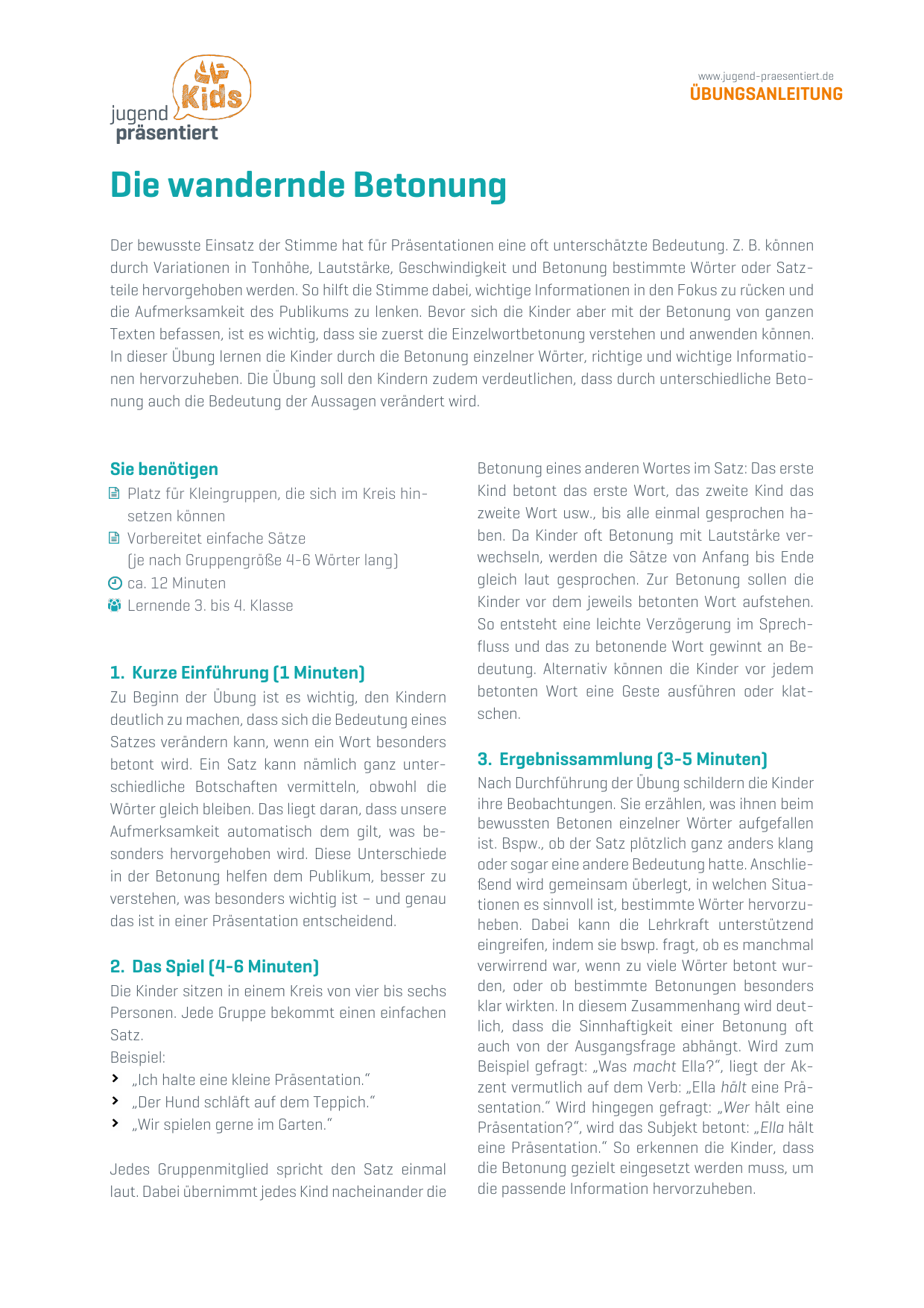 Die Kinder üben die richtige Betonung gezielt einzusetzen und die Satzmelodie zu variieren.