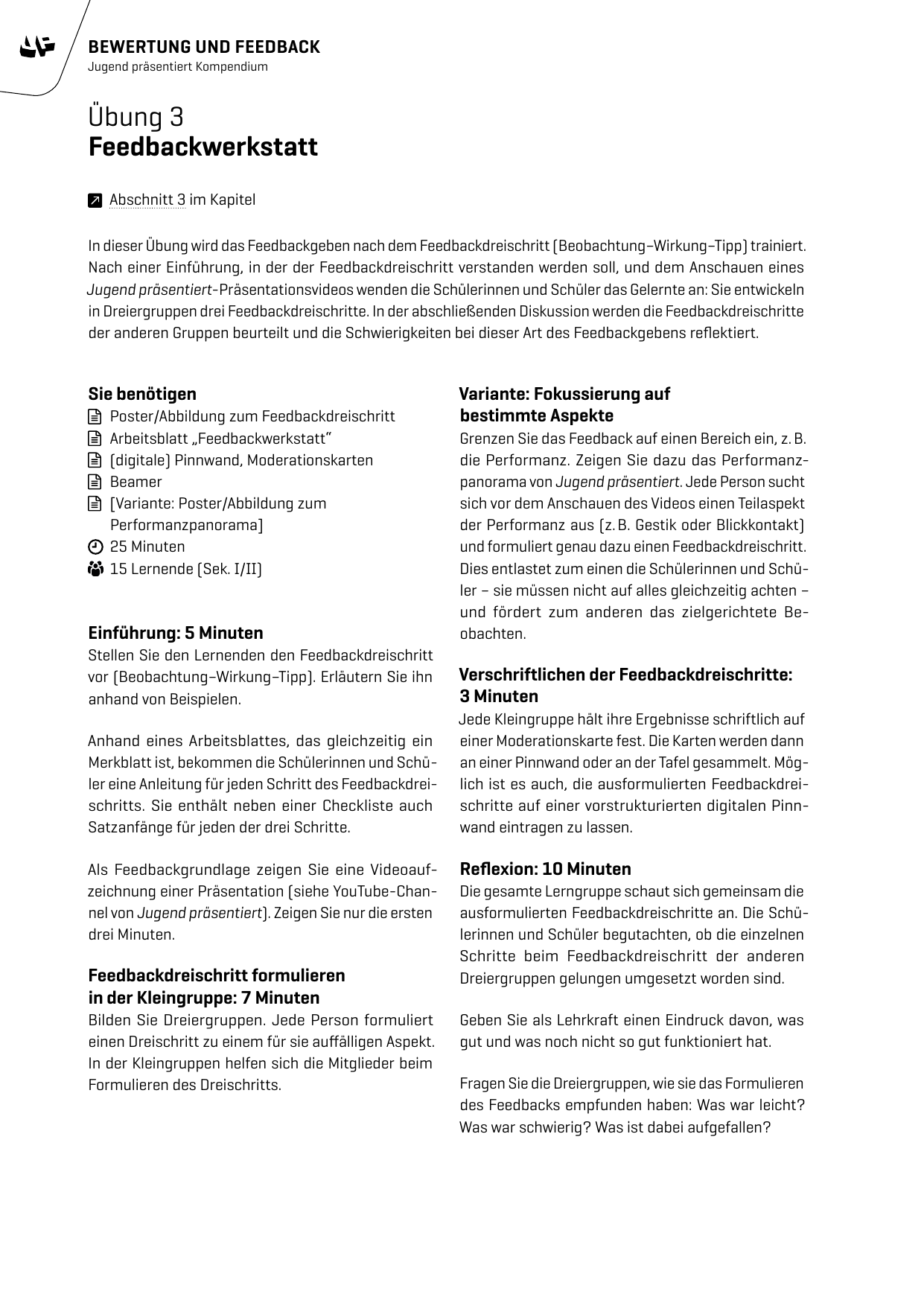Übungsanleitung - Feedbackwerkstatt