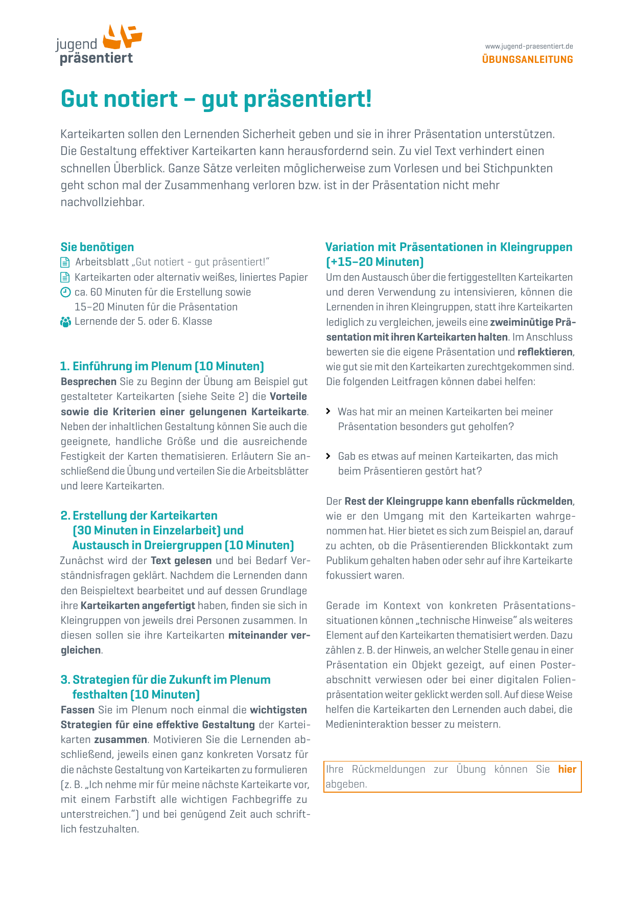 Übungsanleitung - Gut notiert-gut präsentiert