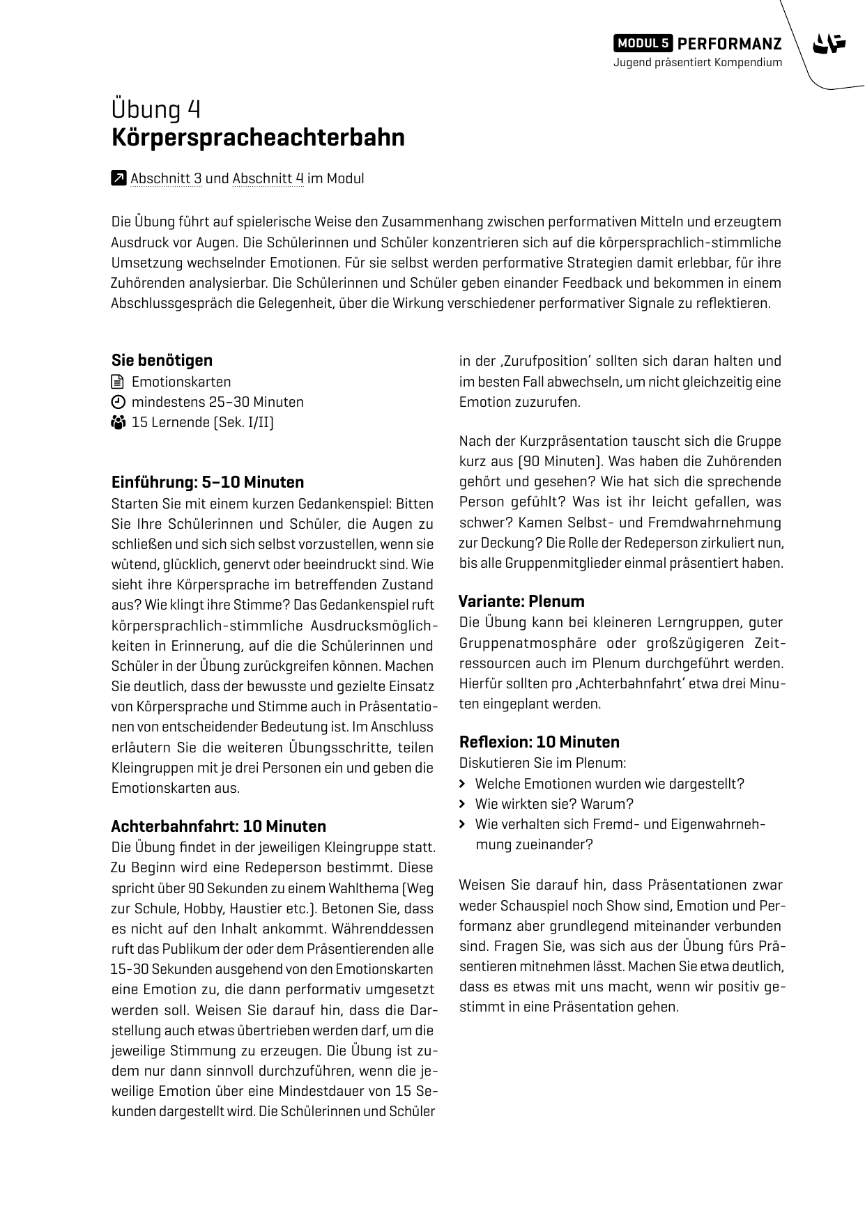 Lernende erkunden in Gruppen Ausdrucksmittel durch das performative Umsetzen zugerufener Emotionen.