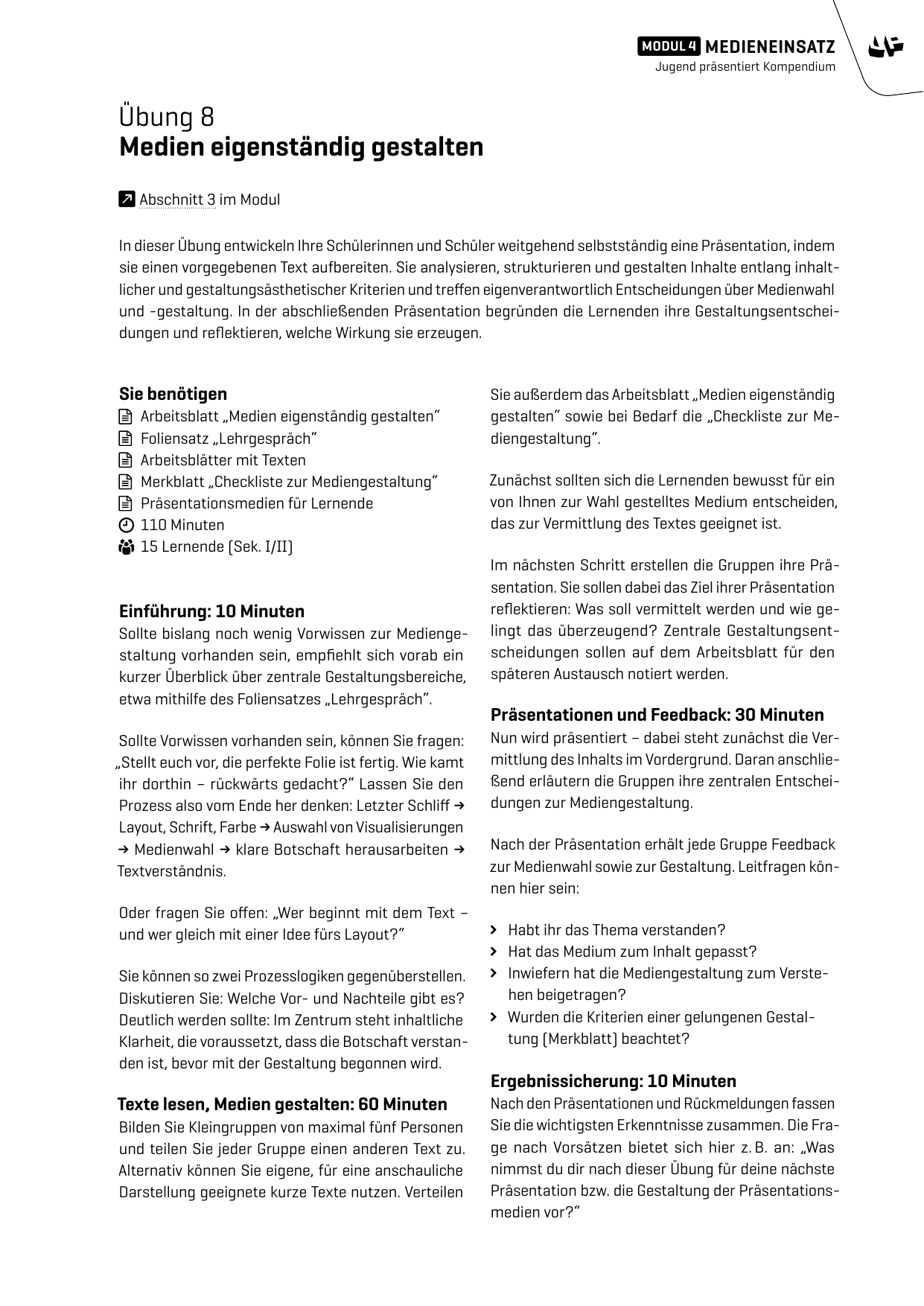 Übungsanleitung - Medien eigenständig gestalten
