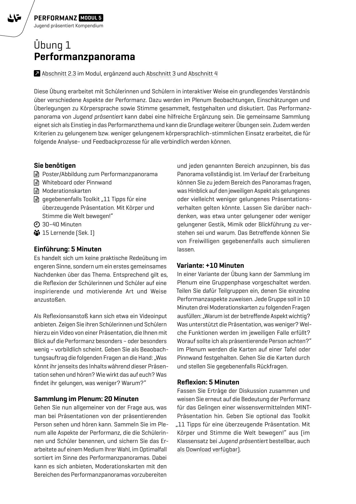 Übungsanleitung - Performanzpanorama