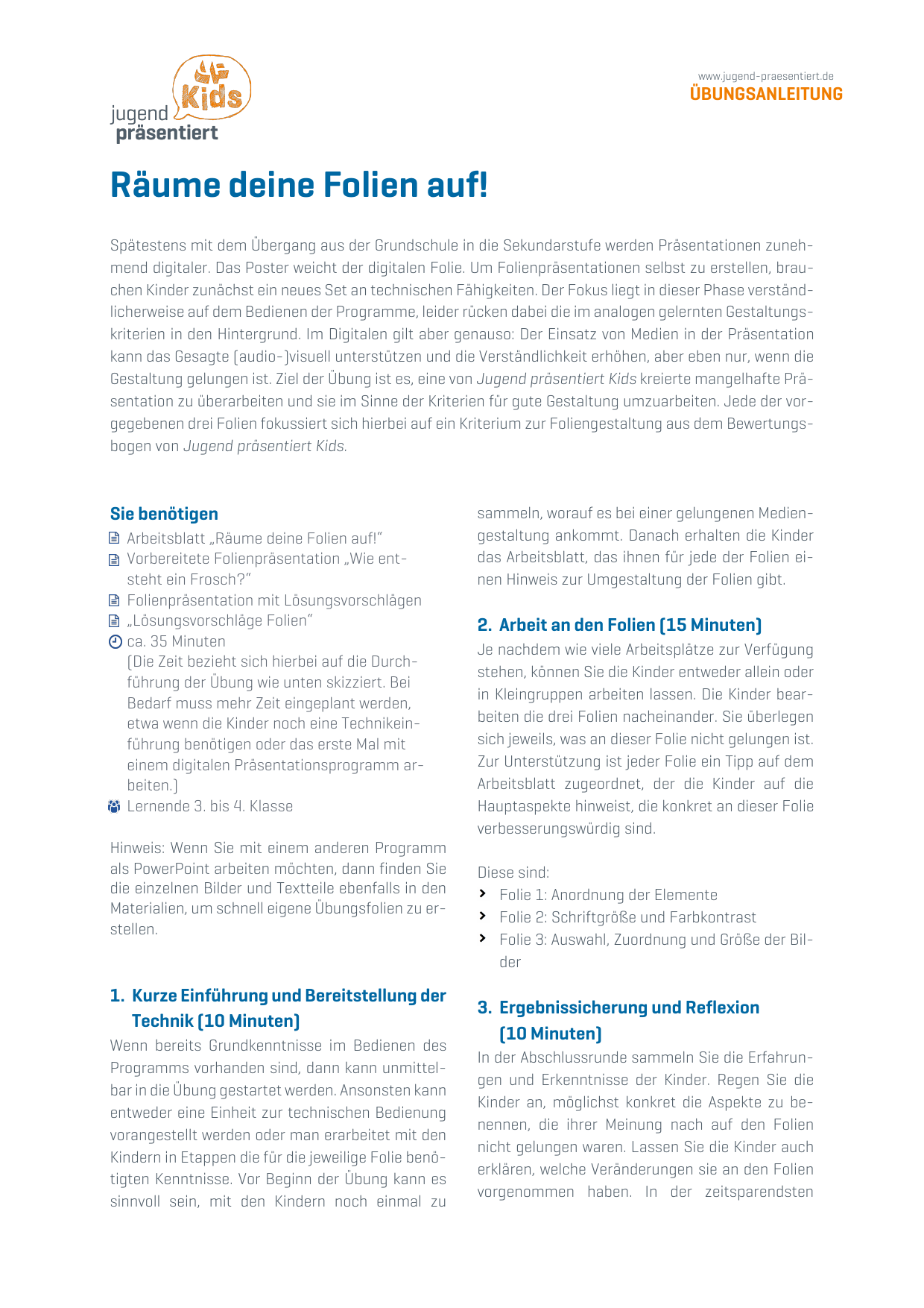 Die Kinder üben Layout, Bilder und Text nach gelernten Kriterien auf einer Folien anzuordnen.