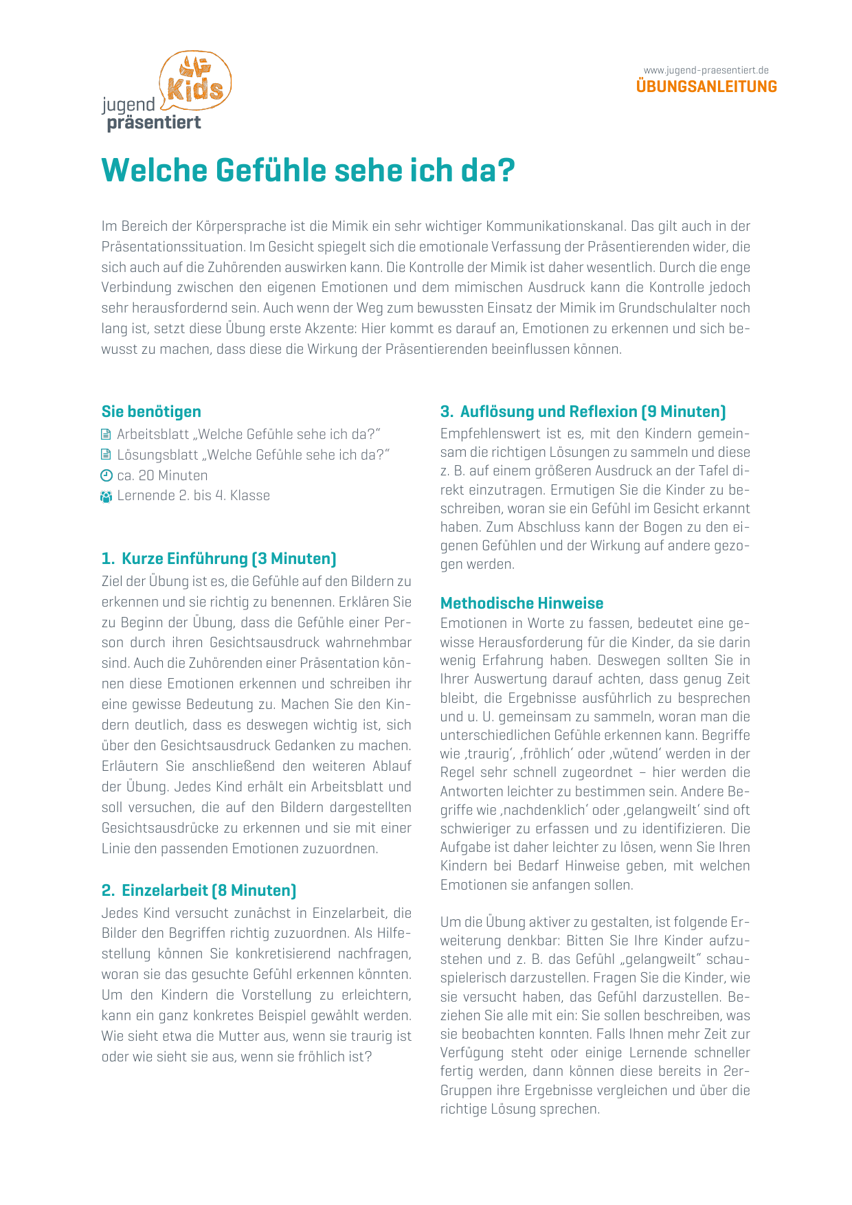 Lernende üben, Gefühle in der Mimik zu erkennen und ihre eigenen zu reflektieren.