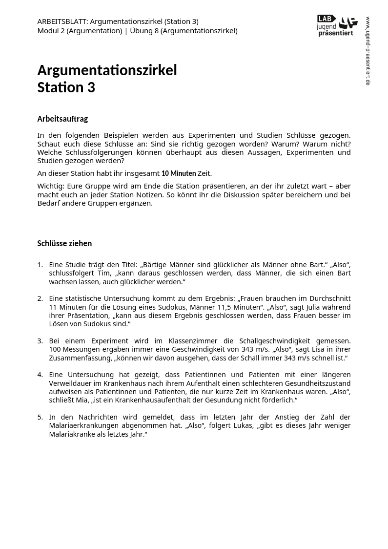 Arbeitsblatt – Argumentationszirkel (Station 3)