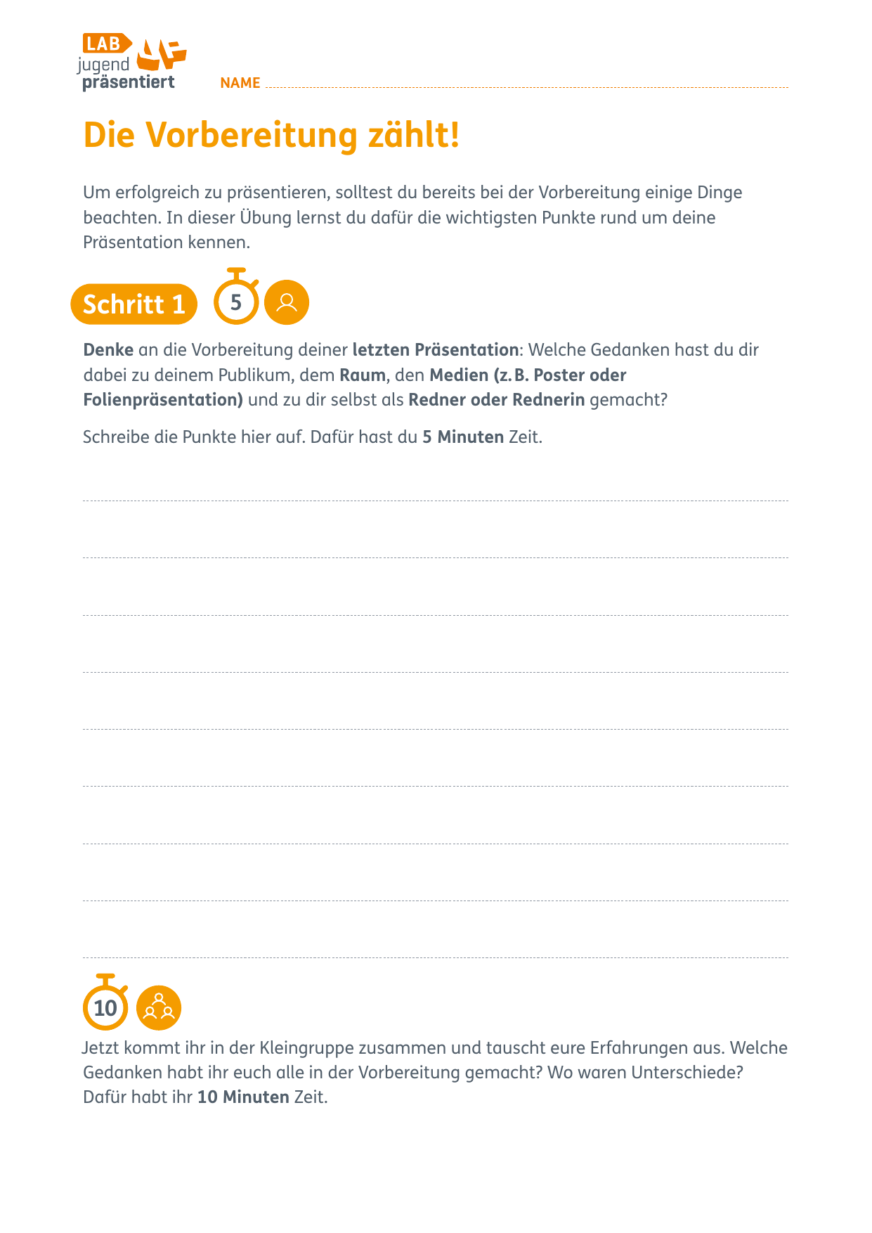 Lernende erkunden die Präsentationssituation und formulieren Tipps für eine gelungene Vorbereitung.
