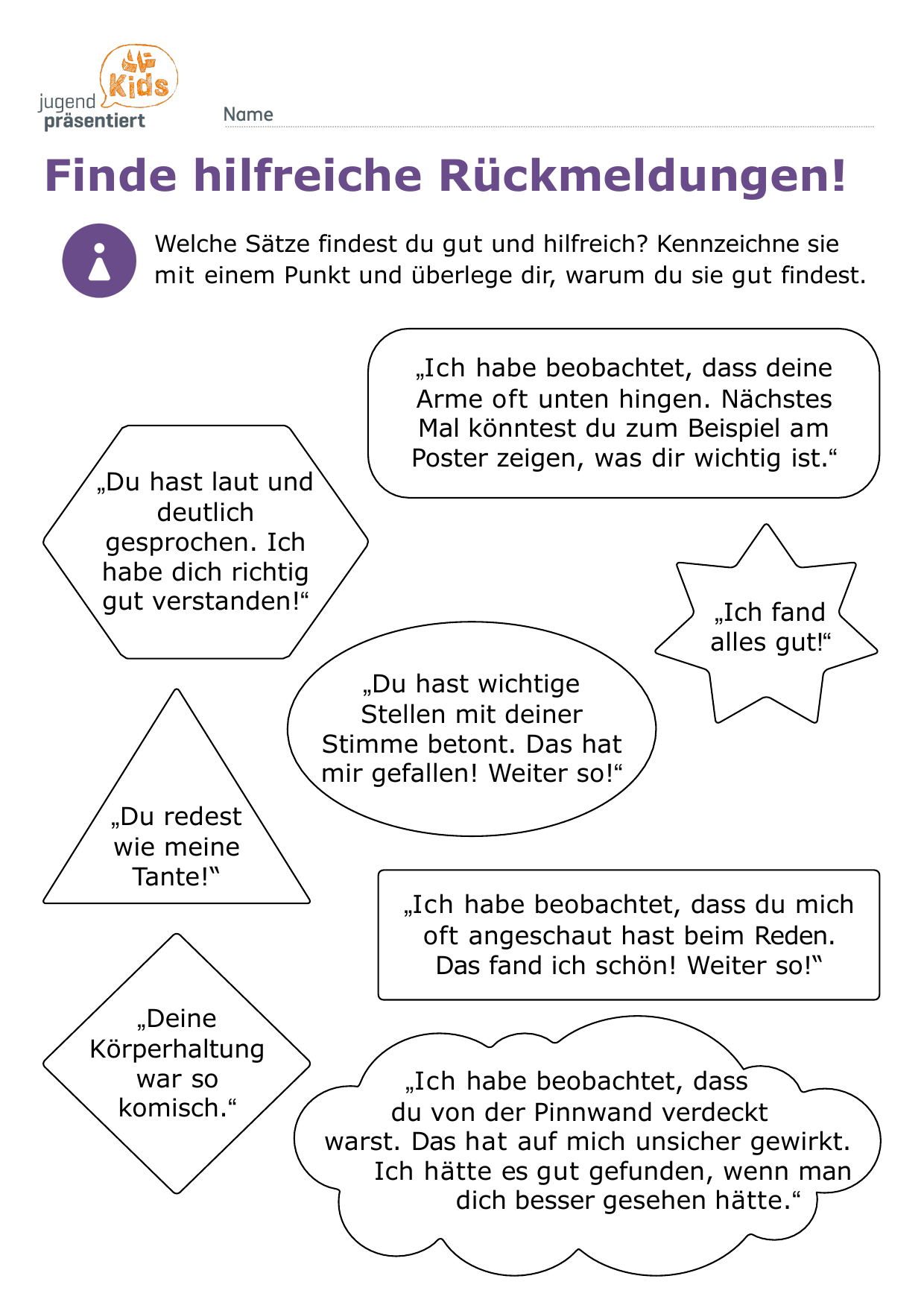 Arbeitsblatt - Finde hilfreiche Rückmeldungen