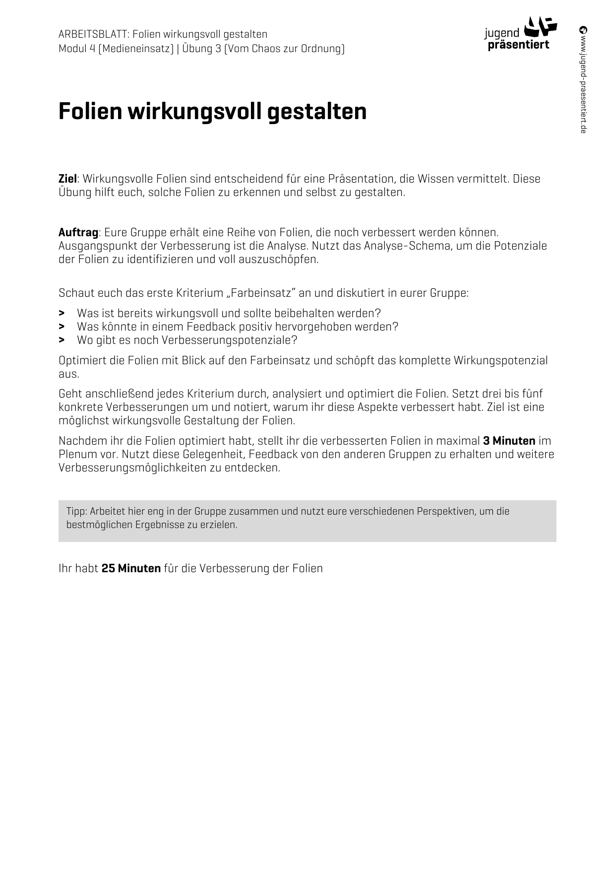 Arbeitsblatt - Folien wirkungsvoll gestalten