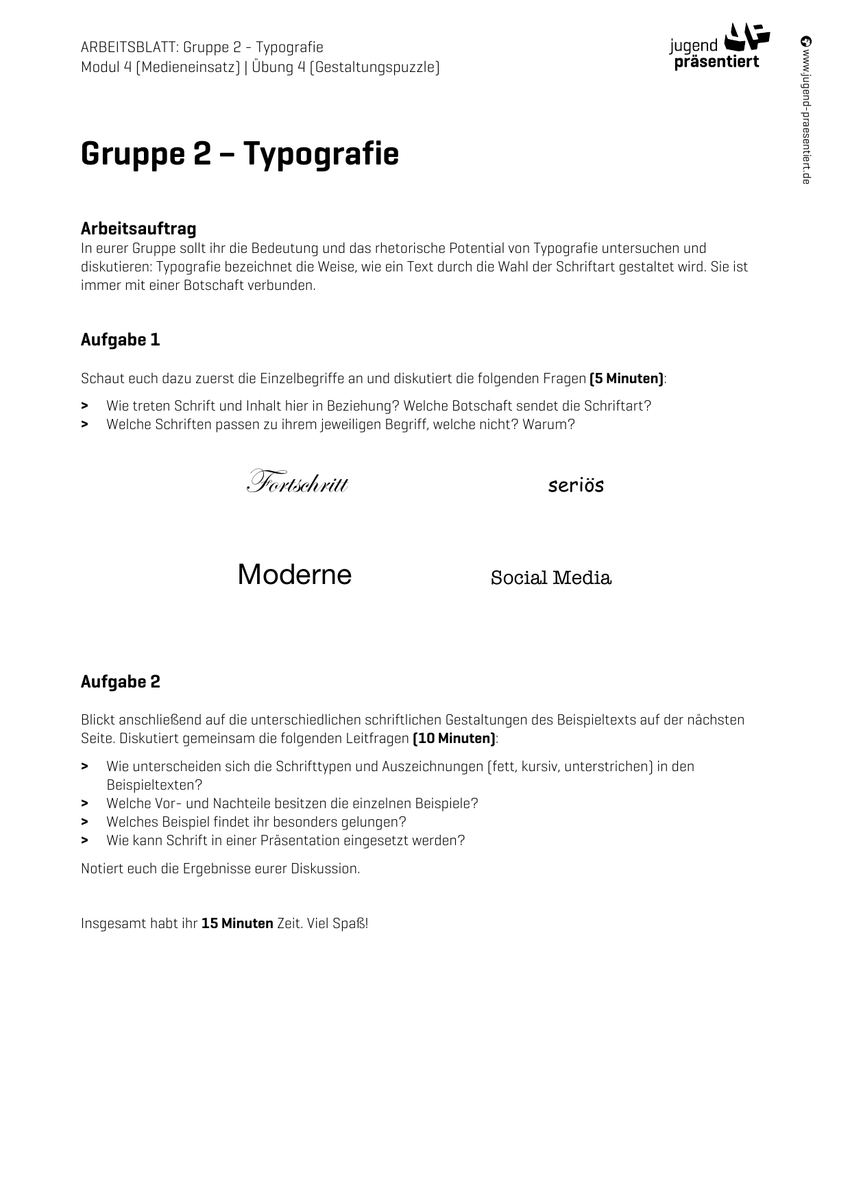 Arbeitsblatt - Gestaltungspuzzle Gruppe2 Typo
