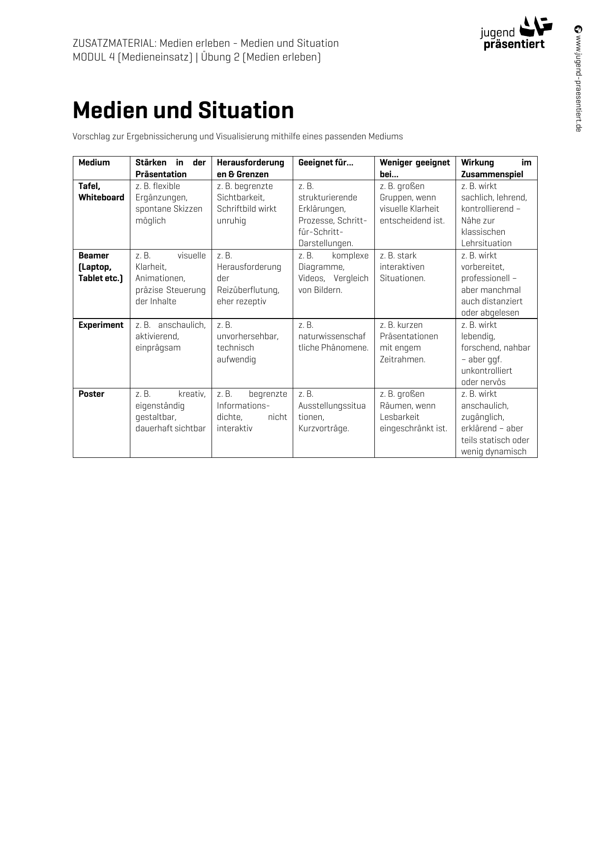 Arbeitsblatt - Medien und Situation