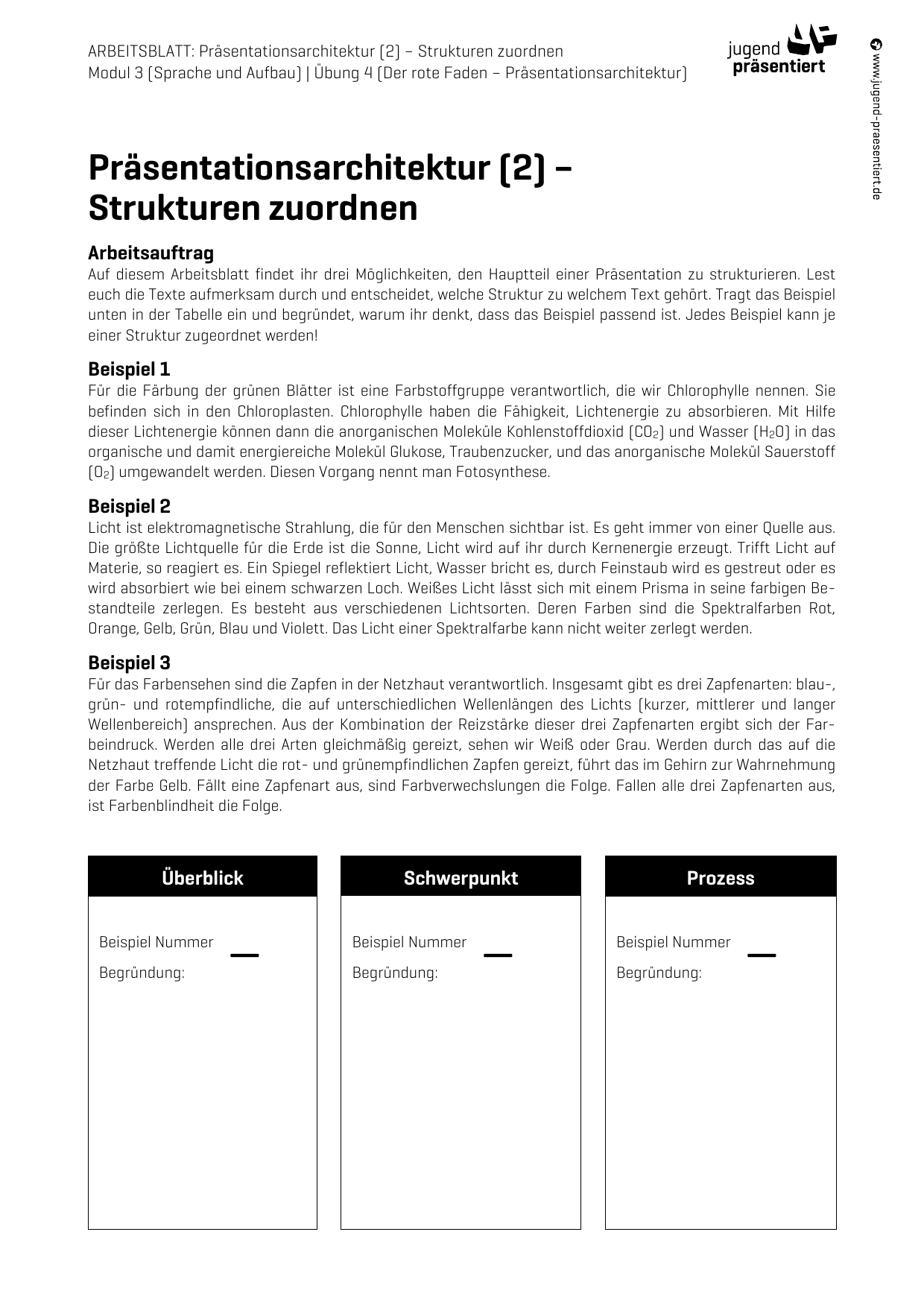 Arbeitsblatt – Präsentationsarchitektur (2) – Strukturen zuordnen