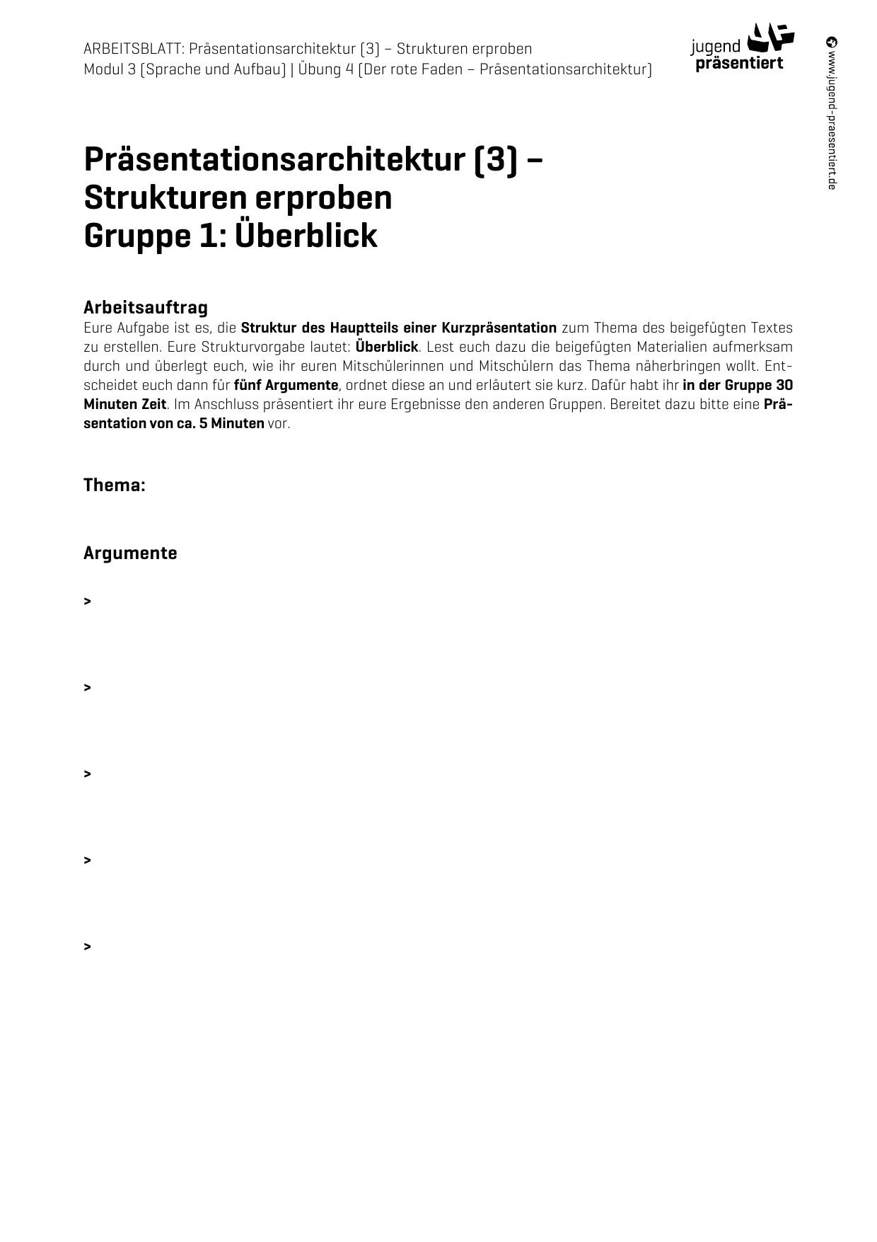 Arbeitsblatt – Präsentationsarchitektur (3) – Strukturen erproben