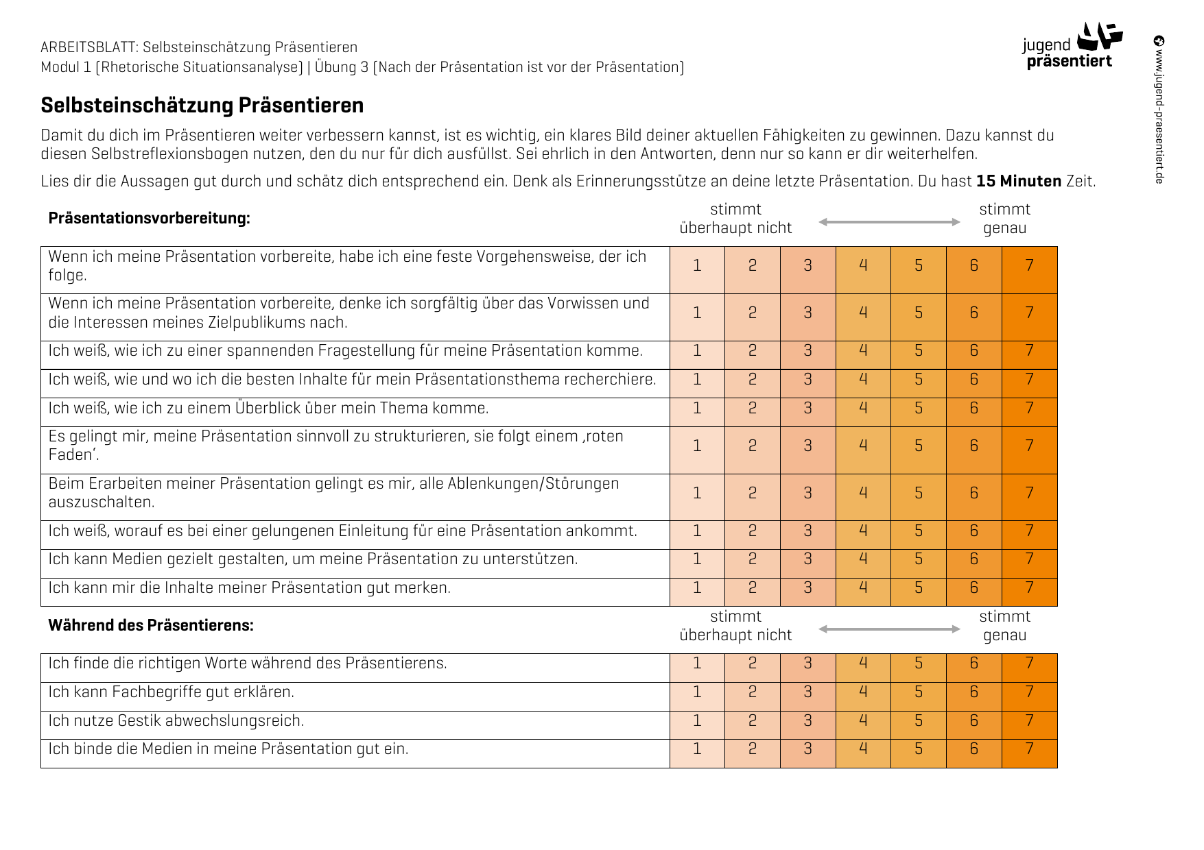Arbeitsblatt - Selbsteinschätzung Präsentieren