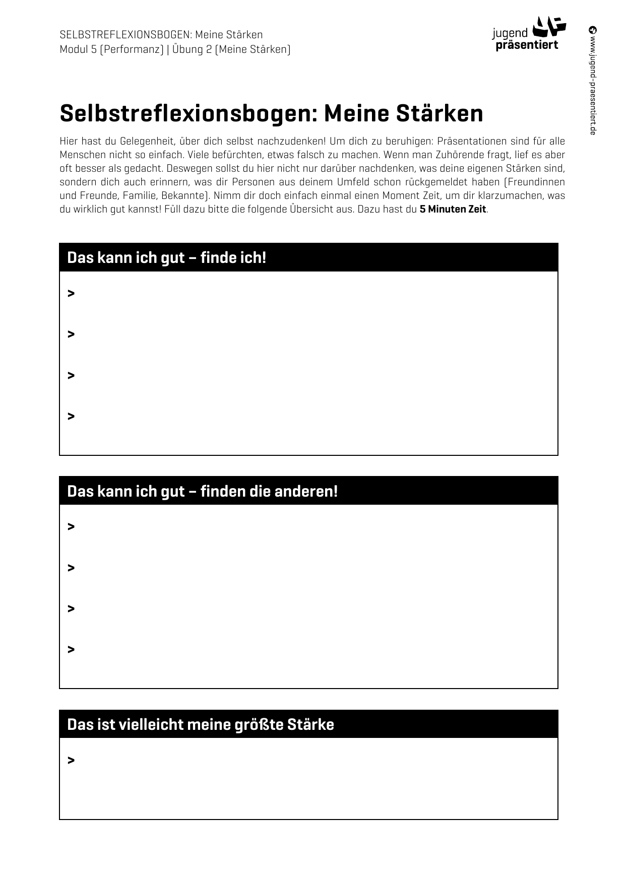 Arbeitsblatt – Selbstreflexionsbogen – Meine Stärken