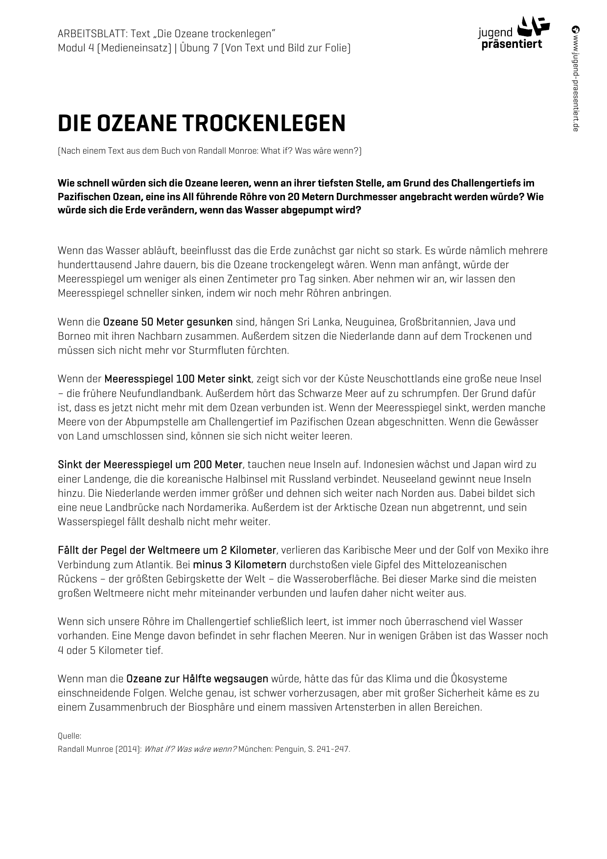 Arbeitsblatt - Text Die Ozeane trockenlegen