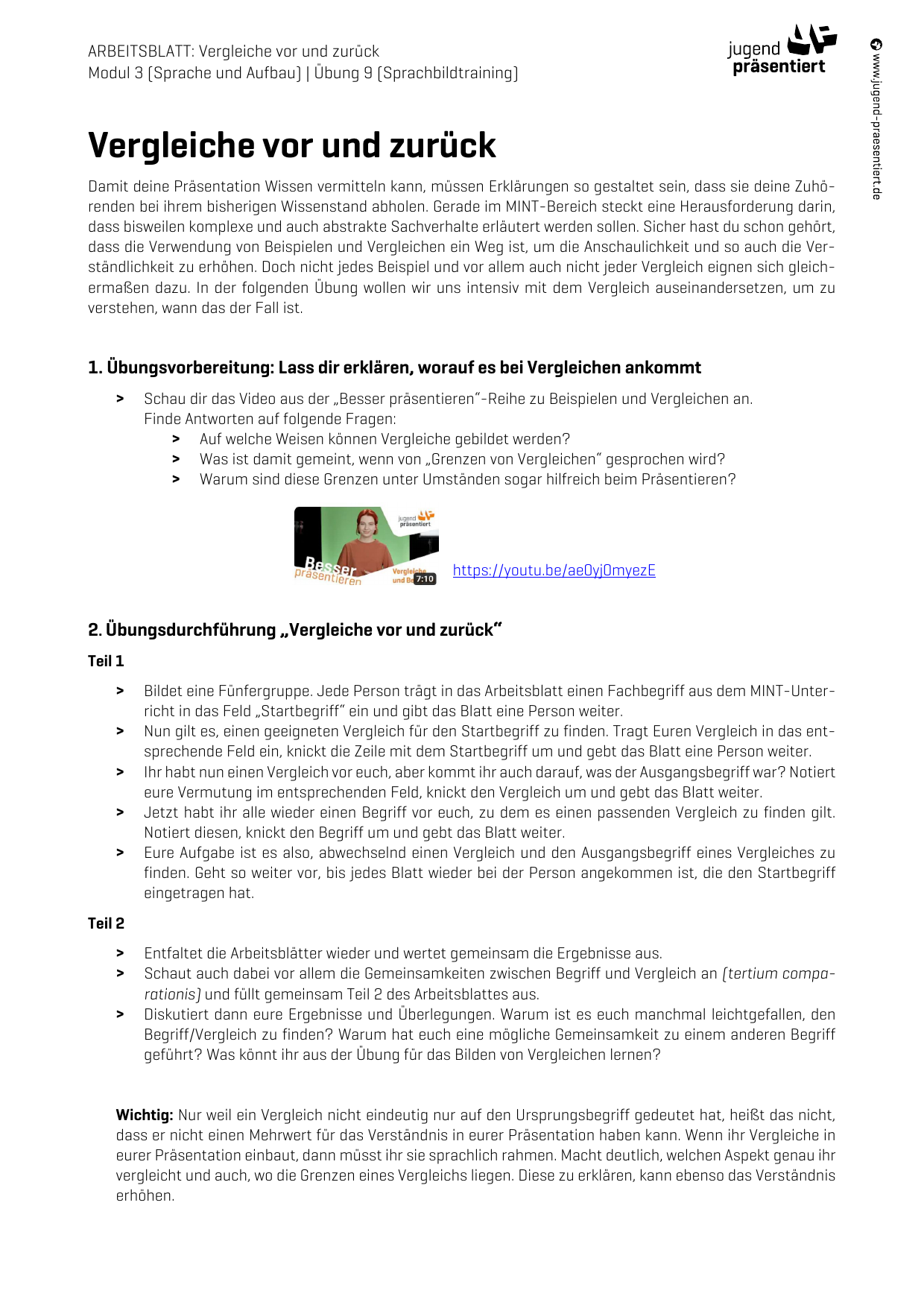 Arbeitsblatt – Vergleiche vor und zurück