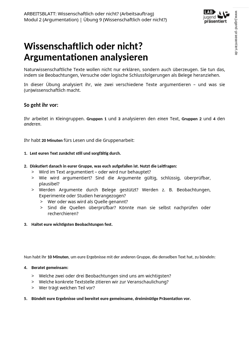 Arbeitsblatt – Wissenschaftlich oder nicht (Arbeitsauftrag)