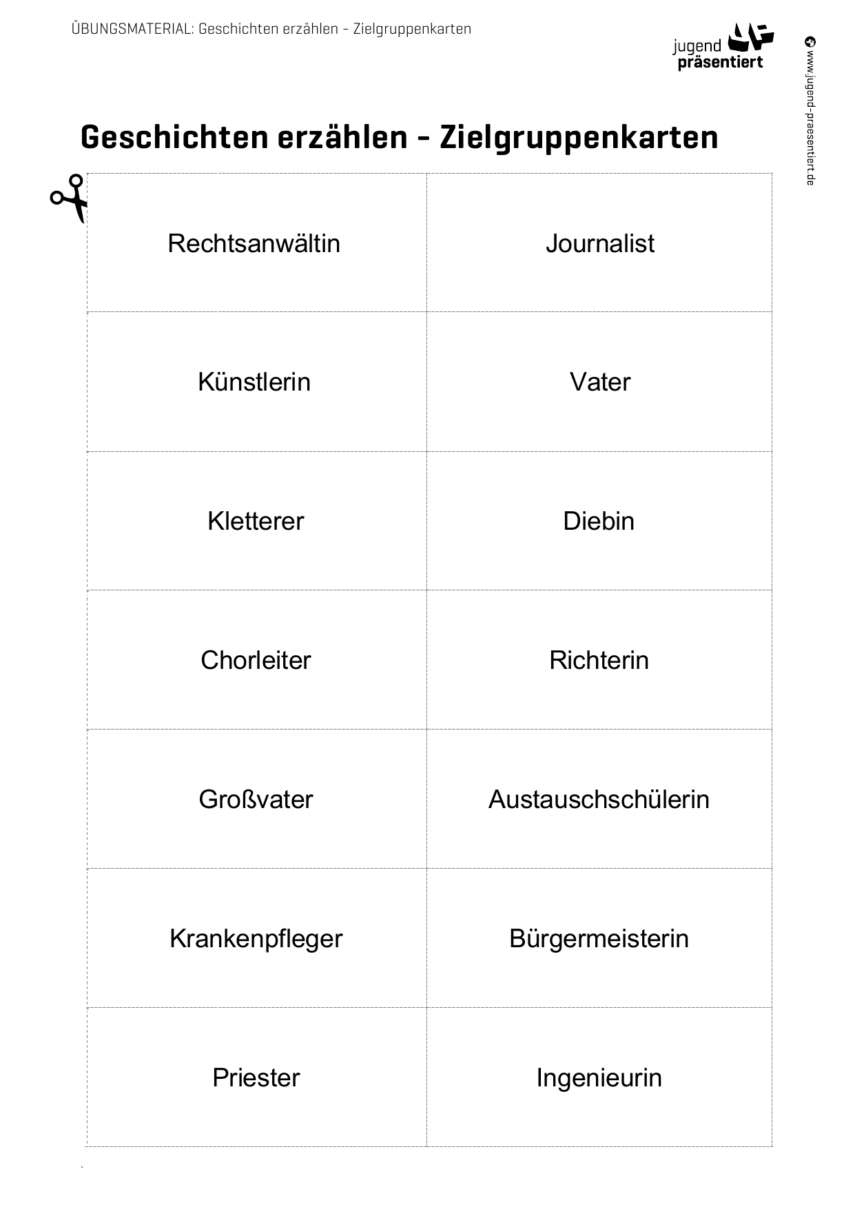 Arbeitsblatt - Zielgruppenkarten