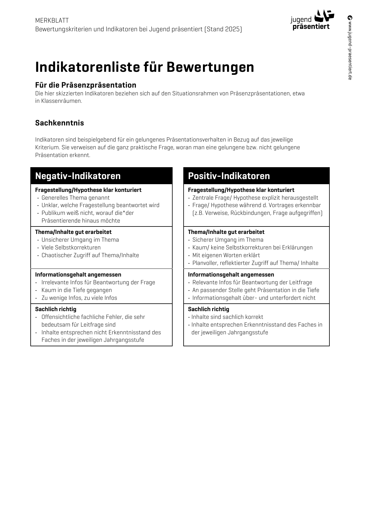 Faire Präsentationsbewertung braucht klare Kriterien – der Jugend präsentiert Bewertungsbogen hilft.