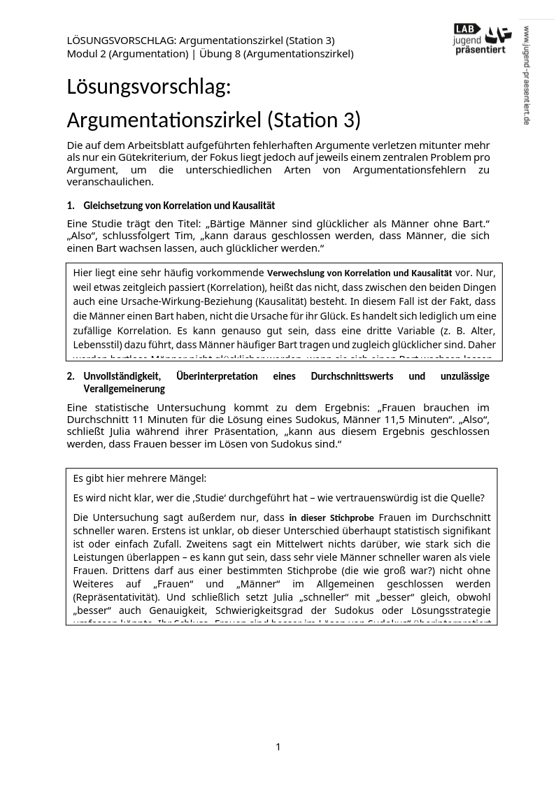 Lösungsvorschlag – Argumentationszirkel (Station 3)