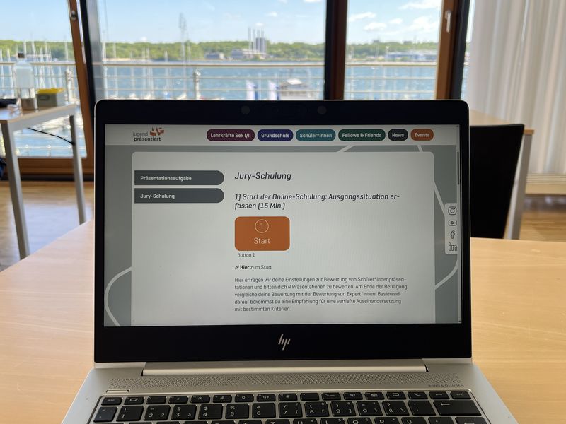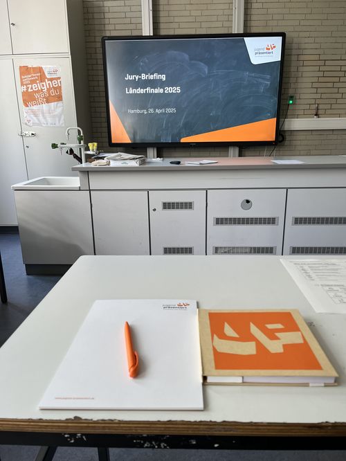 „Meine Arbeit als Jurorin für das Länderfinale begann bereits einige Tage vor dem eigentlichen Event. Denn genau wie die Teilnehmenden müssen auch wir uns gut auf die Präsentationen vorbereiten,“ erläutert Merle. „Dafür stellt uns Jugend präsentiert online umfangreiche Materialien zur Verfügung. Ich gehe dann immer noch einmal alle Bewertungskriterien durch und übe mit kurzen Präsentationsausschnitten, indem ich meine Einschätzungen mit dem Feedback von Expert*innen des Jugend präsentiert-Teams abgleiche.“