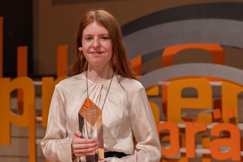 Berlin, 28. September 2025. „Wieso riecht unsere Milchstraße nach Himbeeren?” Mit der Beantwortung dieser Frage überzeugte Tamina Grunert vom Heinrich-Hertz-Gymnasium Berlin die Jury und belegt den ersten Platz des Bundeswettbewerbs. Über den zweiten Platz und den Publikumspreis durften sich Jolina und Olivia Kratz von der Winfriedschule Fulda freuen, die mit ihrer Präsentation zum Thema „Sind wir alle aus Sternenstaub gemacht?“ beeindruckten. Ebenso von der Winfriedschule gewinnt Livia Rupp mit ihrer Präsentation „Wie vergeht die Zeit im Universum?“ den dritten Platz.
