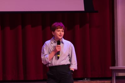 Den Auftakt machte Josefine mit ihrer Präsentation zur fesselnden Frage: „Wie riecht man Angst?“. Ein Thema, das das Publikum in die Welt der menschlichen Sinne und Emotionen mitnahm. Danach folgte eine bunte Mischung an Themen – mal philosophisch, mal biologisch, aber immer spannend. Anni und Jolina erklärten uns, warum Schnee eigentlich weiß ist, während sich Olivia und Jolina die Frage stellten, welche Rolle der Daumen in der Evolution unseres Gehirns spielt. Und zum Schluss ging es in den Bereich der Medizin: Cara und Rebecca widmeten sich dem Rätsel, warum manche Krankheiten nur einmal im Leben auftreten, während andere hartnäckige Wiederholungstäter sind.