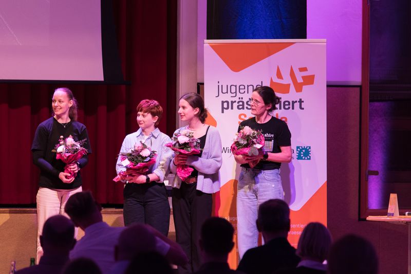 Am Ende des Abends wurde der Publikumspreis vergeben - keine leichte Entscheidung, denn jede Präsentation hatte ihre eigenen Stärken. Gewonnen haben schließlich Jolina und Olivia mit ihrer Frage „Was haben Daumen mit der Entwicklung des Gehirns zu tun?“. Für die beiden war der Abend eine Generalprobe für das Länderfinale in Hessen, das in der darauffolgenden Woche in Dreieich stattfand: Die beiden konnten auch hier die Länderfinale-Jury überzeugen und holten sich sogar den Ländersieg von Hessen.