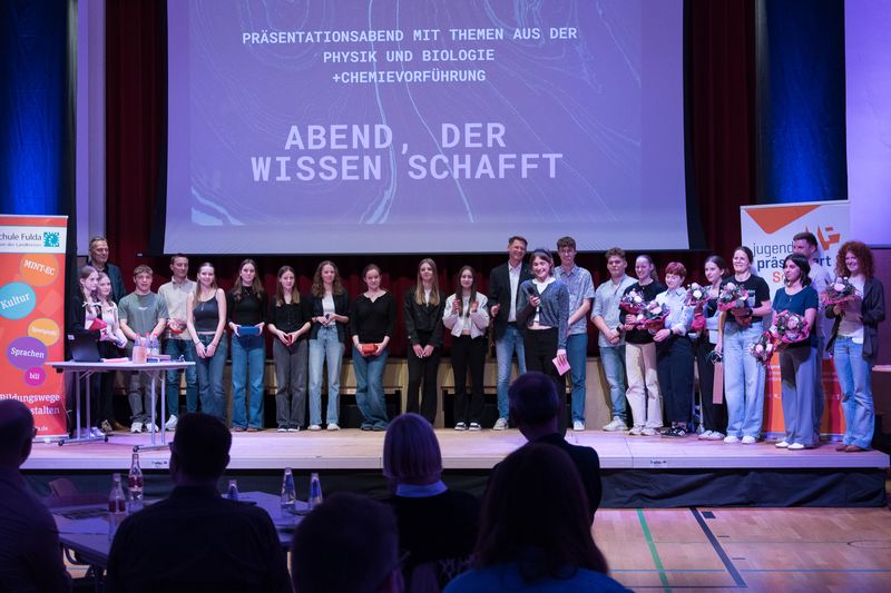 Die meisten kehren zehn Jahre nach dem Abitur an ihre alte Schule zurück, wenn das große Jubiläum gefeiert wird. Ich war ein paar Jahre früher dran – aus einem ganz speziellen Grund: Am 21. März 2025 lud die Winfriedschule zu einem besonderen Abend ein. Unter dem Motto „Ein Abend, der Wissen schafft!“ präsentierten engagierte Schüler*innen der aktuellen und vergangenen Wettbewerbsrunden von Jugend präsentiert ihre MINT-Präsentationen und ich durfte als ehemalige Schülerin dabei sein. Der Abend fand erstmalig statt und wurde von dem Jugend präsentiert-Multiplikator Martin Lindenthal organisiert.