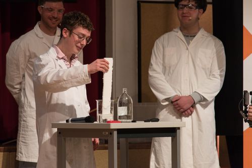 Zwischendurch wurde es bunt und knisternd: In der Chemie-Show präsentierten Oberstufenschüler*innen verschiedene Experimente, die nicht nur für staunende Gesichter sorgten, sondern auch echte Aha-Momente boten, denn alle Experimente wurden verständlich und spannend erklärt – Wissenschaft zum Miterleben quasi!